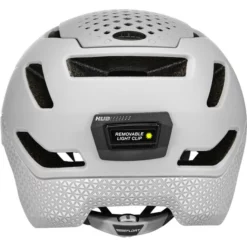 Der Hub hat ähnliche Eigenschaften wie Bells High-End Helme, allerdings auf sein Einsatzgebiet im Stadtverkehr angepasst. Overbrow Ventilation sorgt für einen weniger schweißtreibenden Arbeitsweg. Das Float Fit System ist einfach zu bedienen, sitzt gut und lässt sich mit Brillen gut kombinieren. Weitere durchdachte Details sind eine hochwertige Polsterung, die integrierte Lichthalterung sowie reflektierende Elemente und ein Soft-Brim-Visier. Egal was du trägst, der Hub lässt dich immer gut auf dem Fahrrad aussehen.