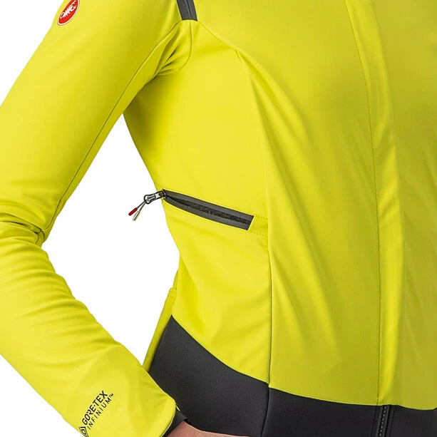 Natürlich funktioniert die ultimative Jacke auch bei Nässe gut, denn Castelli verwendet GORE-TEX INFINIUM WINDSTOPPER-Material zusammen mit wasserdicht getapten Nähten an den kritischen Stellen im Schulterbereich. Andere Nähte sind vor direktem Wasserkontakt versteckt und die wasserabweisende Ausrüstung des Materials reicht aus, um das Eindringen von Feuchtigkeit weitgehend zu verhindern. Nach Castelli´s eigenem, subjektiven Urteil ist es „prinzipiell wasserdicht“ – und trifft die richtige Balance zwischen Wetterschutz, Atmungsaktivität und Komfort. Das heißt nicht, dass kein Tropfen jemals reinkommen wird, aber wenn die Castelli Test Teams längere Ausfahrten bei „echtem“ Regen unternehmen, bleiben sie dabei völlig trocken.