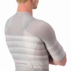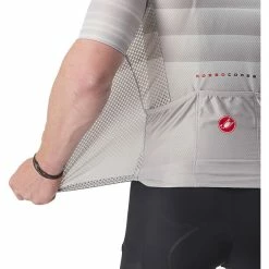 Rennen fahren in den Alpen im Juli ist ein Fall für einige Auserwählte, aber die Produkte, die aus diesen Erfahrungen hervorgehen, sind für den Rest von uns absolut erstaunlich. Castelli dieses Trikot für die Strapazen des Profirennsports bei heißem Wetter und im Hochgebirge entwickelt. Es ist extrem leicht und verfügt über offene Gewebestrukturen für zusätzlichen Luftstrom und schnelle Trocknung. Und durch die Verwendung des gleichen Schnittmusters wie beim Aero Race 6.0 Jersey sorgen Sie dafür, dass auch du ein Maximum an Aerodynamik erhältst. Auch wenn du diesen Sommer nicht über den Galibier fährst, wirst du die weiche Elastizität und die tolle Passform dieses Trikots lieben und du wirst es zu schätzen wissen, wie es dich an den heißesten Tagen kühl hält. Vielleicht wirst du es sogar, wie es die Profis tun, an regnerischen Tagen benutzen, weil es keine Feuchtigkeit aufnimmt. Und du wirst außerdem honorieren, dass der Stoff auf der Rückseite mehr als 90 Prozent der UV-Strahlung blockiert.