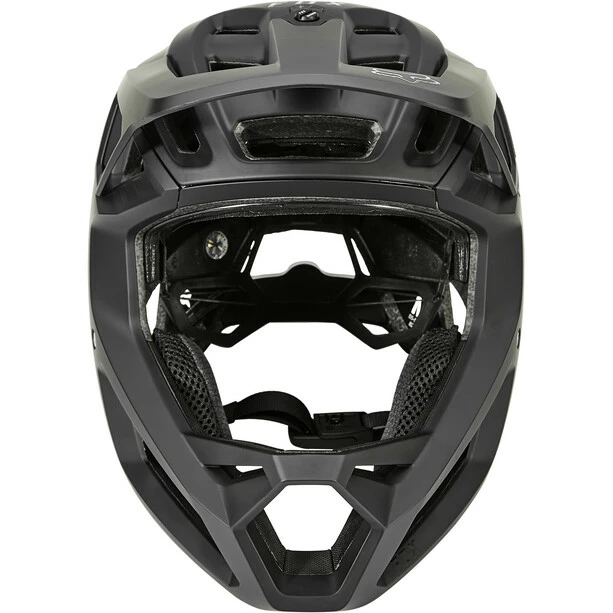 Das in 3 Positionen verstellbare Visier ist brillenkompatibel, und diejenigen, die alle rasanten Momente für die Ewigkeit festhalten wollen, werden von der abnehmbaren GoPro-Halterung unter dem Visier des Mountainbike-Helms Fox Proframe RS einfach begeistert sein.
