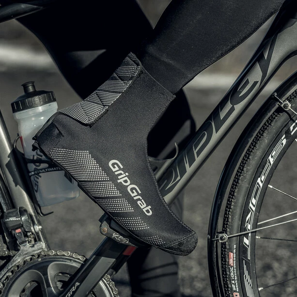 Mit den GripGrab Ride Überschuhen fühlen sich deine Füße selbst bei kaltem und nassem Winterwetter wohl. Das aus besonders elastischem wasserfestem Neopren mit wasserfesten Nähten gefertigte Modell bietet einen guten Schutz vor Spritzwasser und Schmutz. Dank des Klettverschlusses an der Ferse lassen sie sich zudem unglaublich einfach an- und ausziehen.