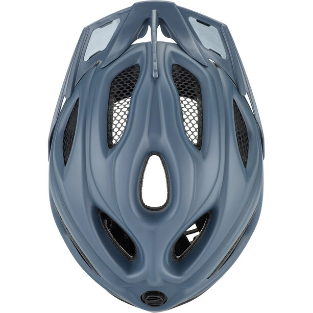 Das Quickstopp-System in der Helmmitte ermöglicht die schnelle Verstellung der Gurtlänge und verhindert das Durchrutschen des Gurtes von einer Seite des Kopfes auf die andere.