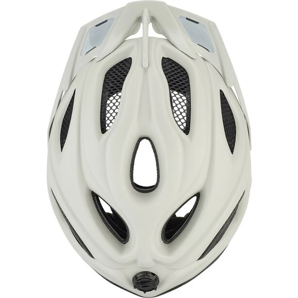 Das Quickstopp-System in der Helmmitte ermöglicht die schnelle Verstellung der Gurtlänge und verhindert das Durchrutschen des Gurtes von einer Seite des Kopfes auf die andere.