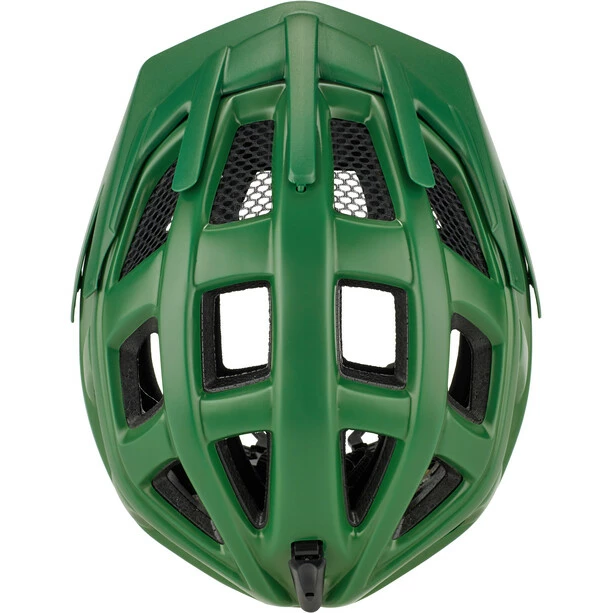 Das Quickstopp-System in der Helmmitte ermöglicht die schnelle Verstellung der Gurtlänge und verhindert das Durchrutschen des Gurtes von einer Seite des Kopfes auf die andere.