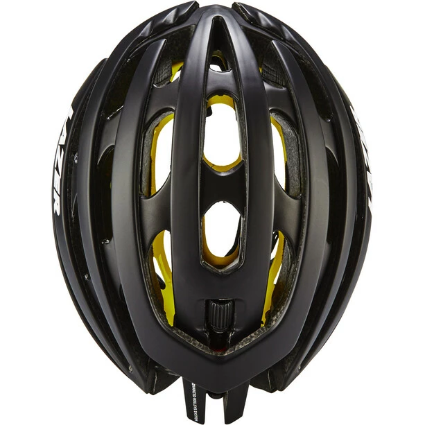 Als vollständig integriertes System, passt sich der Helm, durch das Drehen des Einstellrads auf der Oberseite, gleichmäßig an den Kopf an, ohne dass dabei einzelne Druckpunkte entstehen. Die Bedienung erfolgt dabei mit nur einem Finger, so dass das Einstellen auch problemlos während der Fahrt möglich ist. Darüber hinaus bietet der praktische Verschlussring, durch das Wegfallen des Einstellrads auf der Rückseite, ausreichend Platz, dass auch komfortabel ein Pferdeschwanz getragen werden kann.
