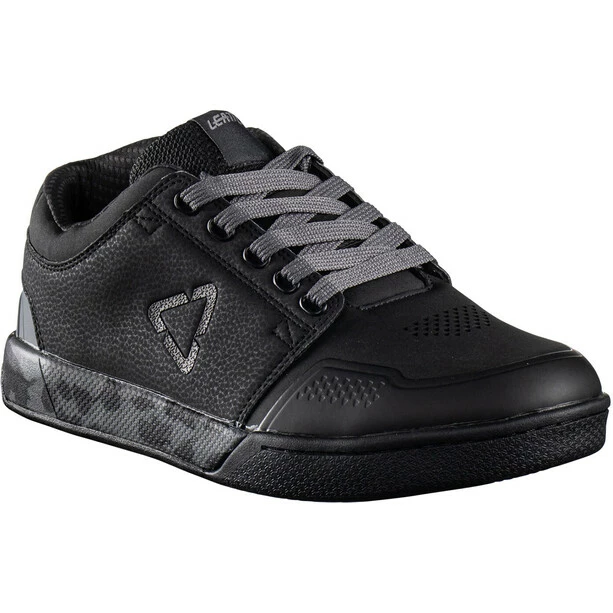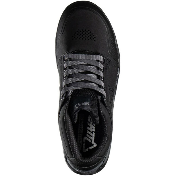 Der Leatt 3.0 Flatpedal Shoe hat eine flache Sohle mit griffigem Fersen- und Zehenbereich und eine flexible und gleichzeitig steife Zwischensohle. Die RideGrip-Mischung erzeugt einen guten Grip auch auf nassen Oberflächen. Apropos Nässe: Das Obermaterial des Leat 3.0 ist aus wasserabweisendem und pflegeleichtem Kunstleder. Auch die Zunge ist wetterfest und trägt trotz Polsterung kaum auf. Ein Knöchelschutz und verstärkte Zehen-, Fersen- und Achillesbereiche runden das Ganze ab und machen den zu einem stylischen und zweckmäßigen Begleiter auf dem Trail.