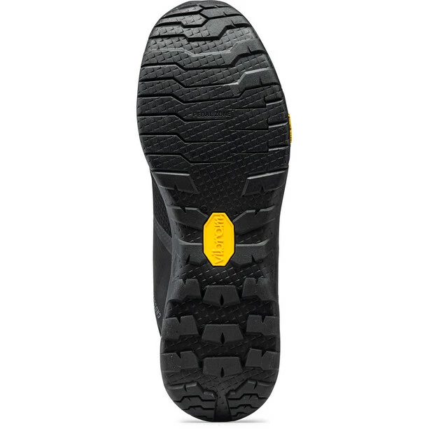 Die flache Vibram-Volt-Sohle sorgt beim Treten mit Flachpedalen für maximale Sicherheit und Komfort. Dank der breiten Vorderseite und der Noppen im Fersenbereich bietet diese Sohle Halt auf den Pedalen und in jedem Terrain. Die EVA-Zwischensohle sorgt für geringeres Gewicht und verbesserte Stoßdämpfung. Das neuartige X-Dial-SLW6-Verschlusssystem mit stufenweiser Lockerung ermöglicht eine passgenaue Einstellung und einen optimalen Verschluss für jeden Fahrstil. Das Obermaterial besteht aus atmungsaktivem Mesh mit abriebfesten TPU-Einsätzen.