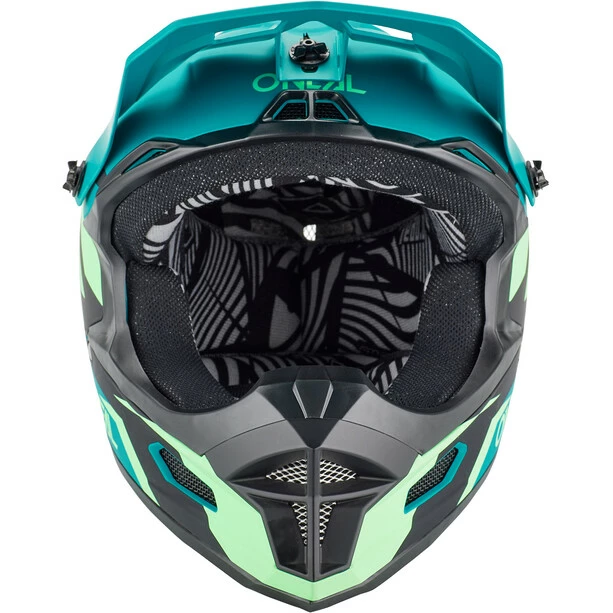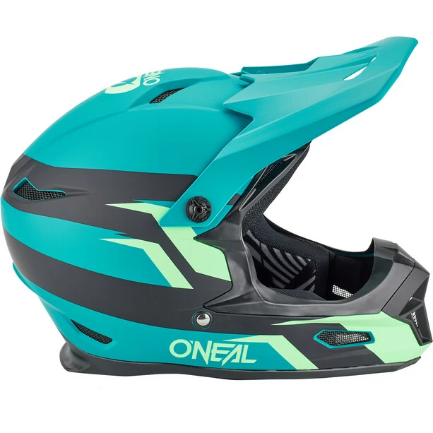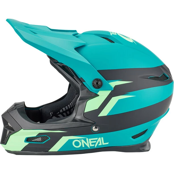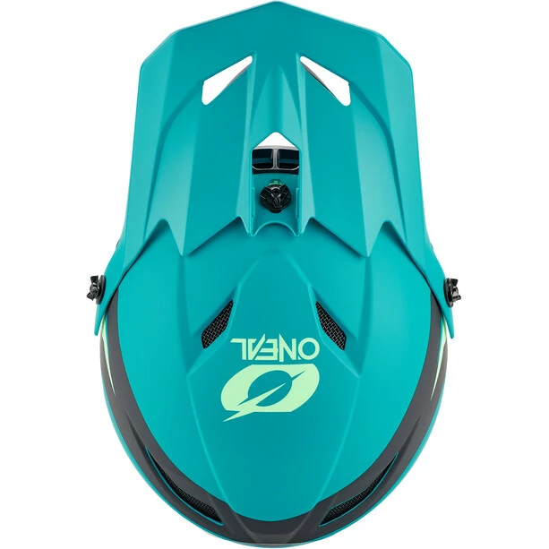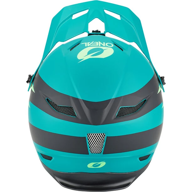 Fullface-Helm mit ABS-Schalenkonstruktion und zahlreichen Lüftungsöffnungen für Belüftung und Kühlung.