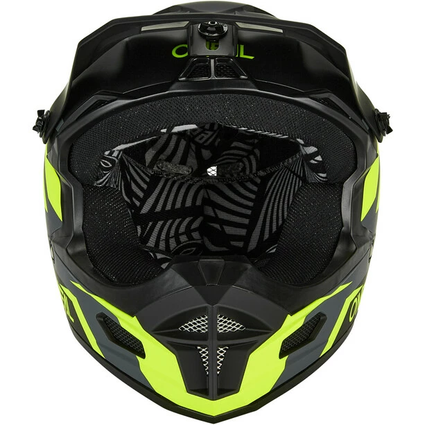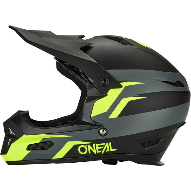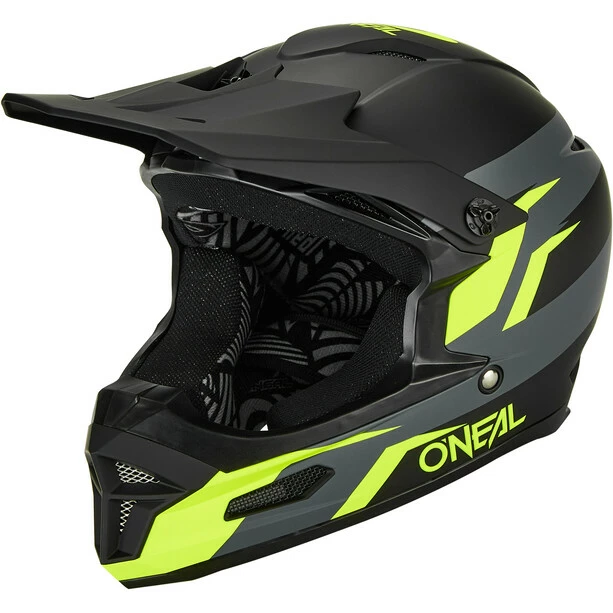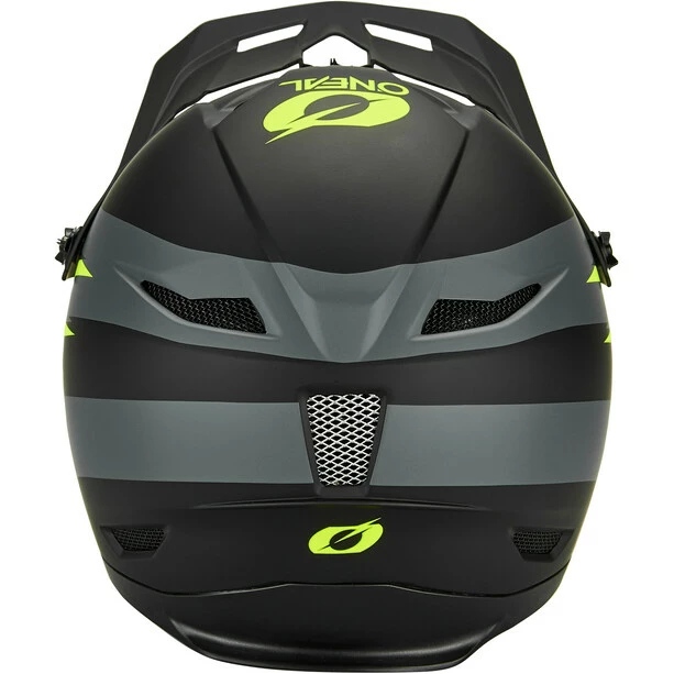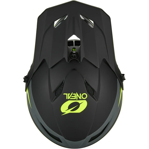 Fullface-Helm mit ABS-Schalenkonstruktion und zahlreichen Lüftungsöffnungen für Belüftung und Kühlung.