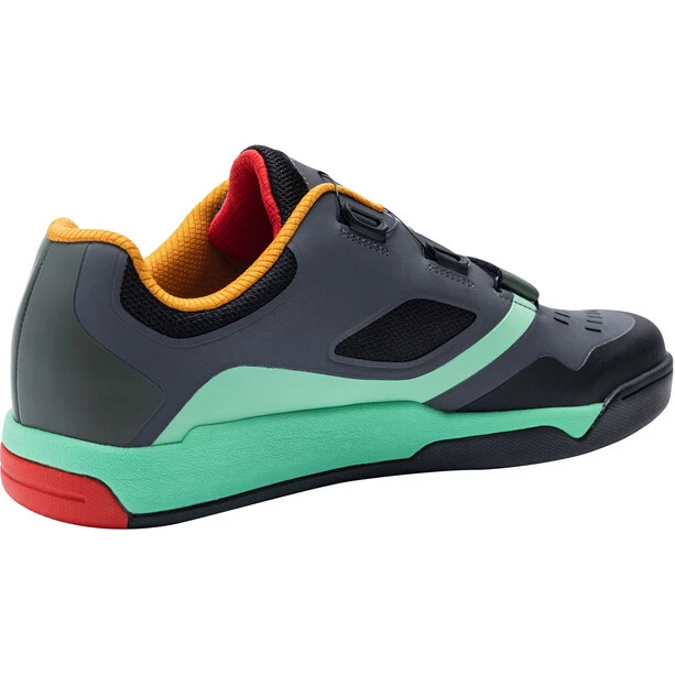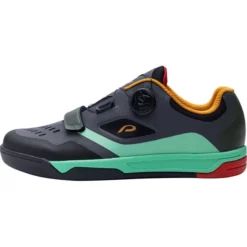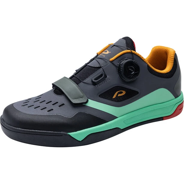 Dieser moderne Flatpedal Sneaker aus TPU, PU und Mesh bietet durch die Kombination der Materialien, wie die leichte stoßdämpfende EVA Zwischensohle eine angenehme Festigkeit und Atmungsaktivität. Durch den atop-Verschluss entsteht ein erleichterter Einstieg und im Zehenbereich sorgt ein zusätzlicher Klettverschluss für noch besseren Sitz. Die herausnehmbare, ergonomische Einlegesohle verschafft durch ein dämpfendes Fersenelement zusätzlichen Tragekomfort.
