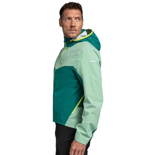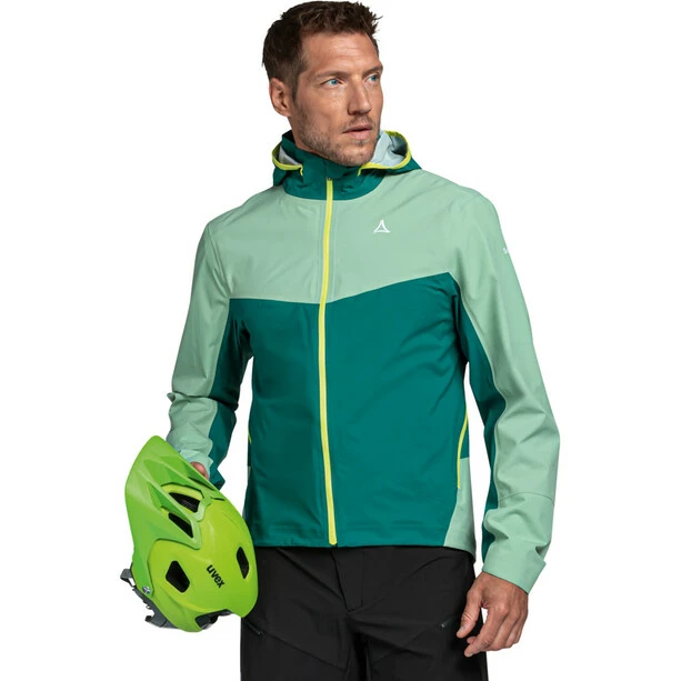 Du suchst die perfekte Jacke zum Mountainbiken und das Wetter soll dabei keine Rolle spielen? Dann solltest Du Dir die winddichte und wasserdichte Bike Jacke von Schöffel nicht entgehen lassen. Das 2,5-Lagen VENTURI Material mit einer Wassersäule von 20.000 mm und einer enorm hohen Atmungsaktivität hält dich absolut trocken von innen, wie von außen. Zudem wurde bei der Bike Jacke von Schöffel die 4D BODY MAPPING Technologie eingesetzt, wodurch die Materialien so miteinander kombiniert werden, dass das Material noch strapazierfähiger und atmungsaktiver wird. Außerdem kannst Du Dich auf die optimale Ventilation in der Jacke verlassen und bekommst so immer das perfekte Körperklima. Die extrem leichte Regenjacke verfügt des Weiteren über eine Kapuze und eine integrierte Smartphone Tasche.