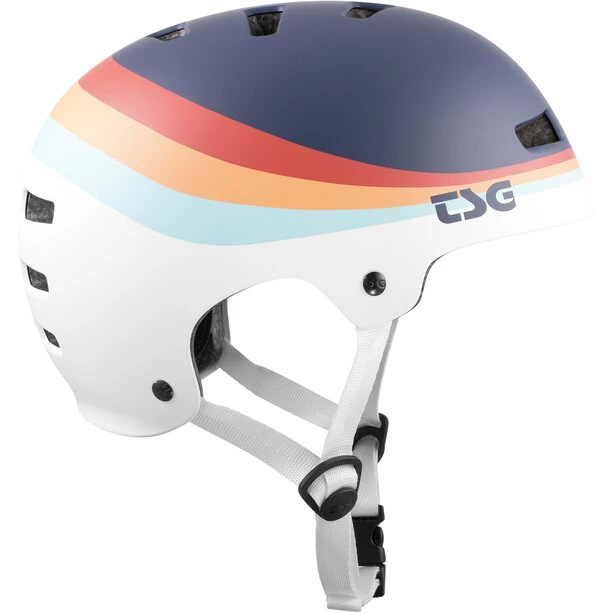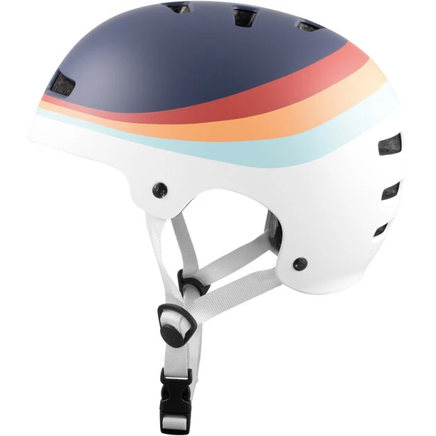 Der Evolution-Helm hat eines der schlanksten Hartschalen-Designs, die es gibt. Er verfügt über eine robuste Skate-Hardshell-Konstruktion, die alle nützlichen Teile Ihres Noggins sicher schützt. Das Design krümmt sich anatomisch um den Kopf für eine gute Passform und maßgeschneiderten Tragekomfort. Der Evolution Helm wird in vielen Farben und Grafiken angeboten.