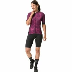 Vaudes sportlichster Schnitt in modernem Design für ambitionierte Rennrad Fahrerinnen: Das hinten besonders lang und vorn besonders kurz geschnittene Trikot mit durchgehendem Reißverschluss bietet ein Höchstmaß an Tragekomfort in jeder Fahrposition. Die ultraleichten, sehr stretchigen Materialien, angeschnittene Schultern, silikonisierte, elastische Bündchen an den extra lang über den Bizeps geschnittenen Ärmeln und im Bund machen das Trikot zur zweiten Haut. Das sehr elastische, ins Design integrierte Mesh-Material bringt im Rücken zusätzliche Belüftung. 3 offene Rückentaschen sind für leichteren Zugriff beim Fahren leicht abgeschrägt. In der rechten Tasche findet sich zusätzlich eine kleine, mit Reißverschluss gesicherte Tasche für Schlüssel oder EC-Karte. Das Trikot lässt sich bestens mit den Kuro Tights und dem VAUDE Kuro-Regenpaket kombinieren. Das Kuro Pro FZ Tricot aus bluesign-zertifizierten Materialien ist wie gemacht für ambitionierte Rennradfahrerinnen, die Wert auf Qualität “Made in Europe” legen.